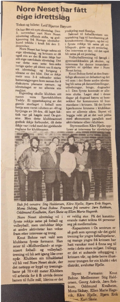Nore Neset Idrettslag i staden. Klubben vart stifta 5. november 1980, og i den samanhengen uttalte styremedlem Kåre Hjelle at