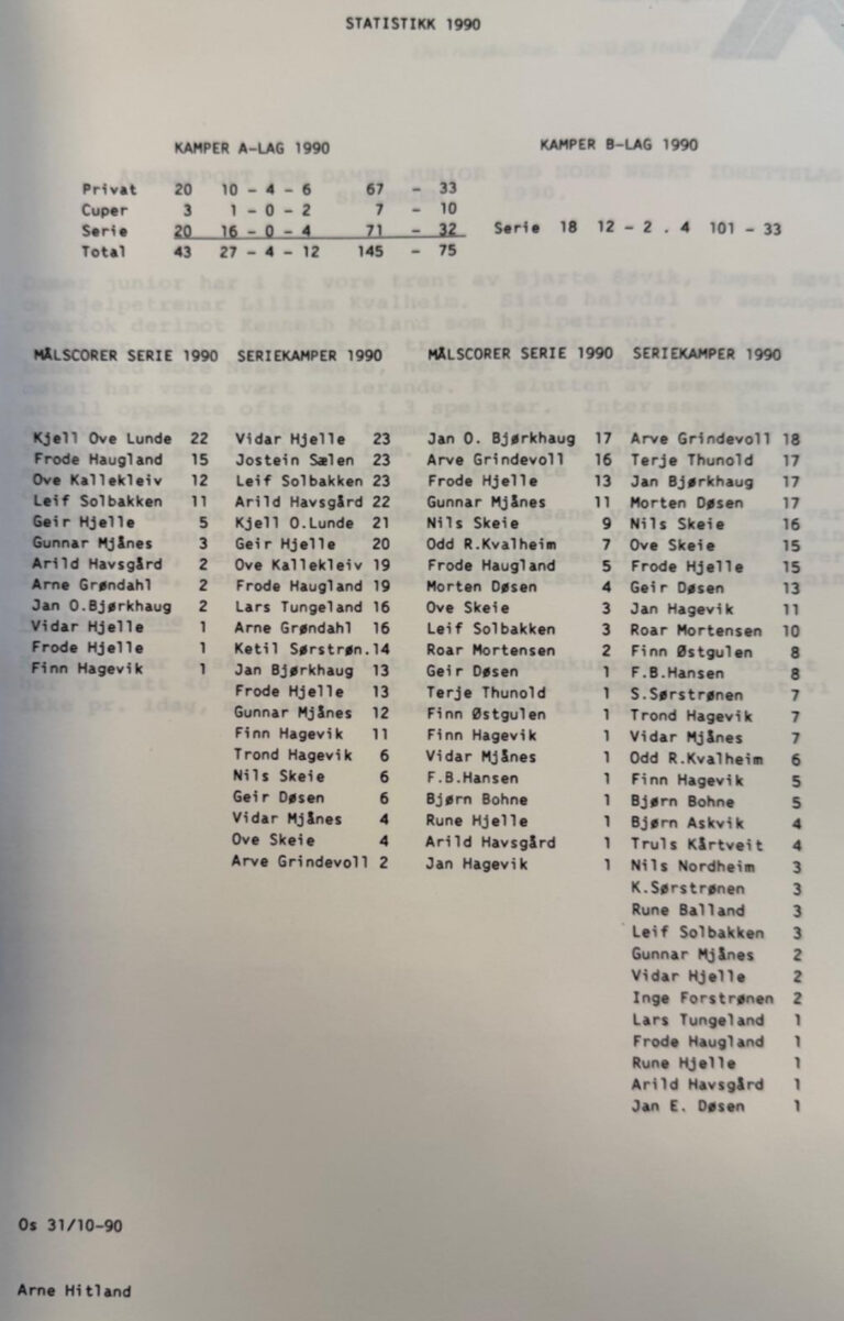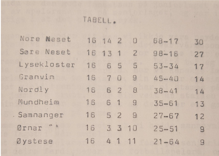 Statistikken deira var knallgod denne sesongen: 16 kampar; 14 seiarar, 2 uavgjorde og INGEN tap (30 poeng)! Årets toppscorar vart Trond Steffen I. Hagevik med heile 20 mål på 16 kampar. Dei spelande trenarane, Herman Hagevik og Magnar Heggland, fekk óg mykje av æra for den flotte sesongen. NNIL si deltaking i Varegg turnering, gjekk ut dette året då distriktslegen i Os la ned startforbud grunna eit tilfelle av smittsam hjernehinnebetennelse.