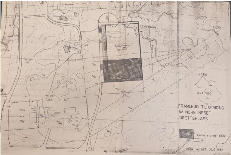 Styret oppretta ein eigen banekomité som stod i bresjen for å få til eit høveleg anlegg på Nore Neset, med både veleigna garderobeløysing, flombelysning på banen og utviding av den eksisterande banen (mot nord). Og i byrjinga av juli fekk dei kjøpt ut tomtene dei trong til dette frå de ulike grunneigarane.